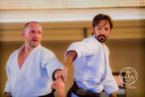 Tadeu Marinho Sensei teve seu primeiro contato com Stéphane Sensei em 2004 e, desde então, acompanha de perto seu trabalho. Ele é o responsável por sua vinda anual a Recife, para compartilhar ensinamentos com a comunidade aikidoca nacional e, em especial, com os alunos do Munen Mushin Dojo.